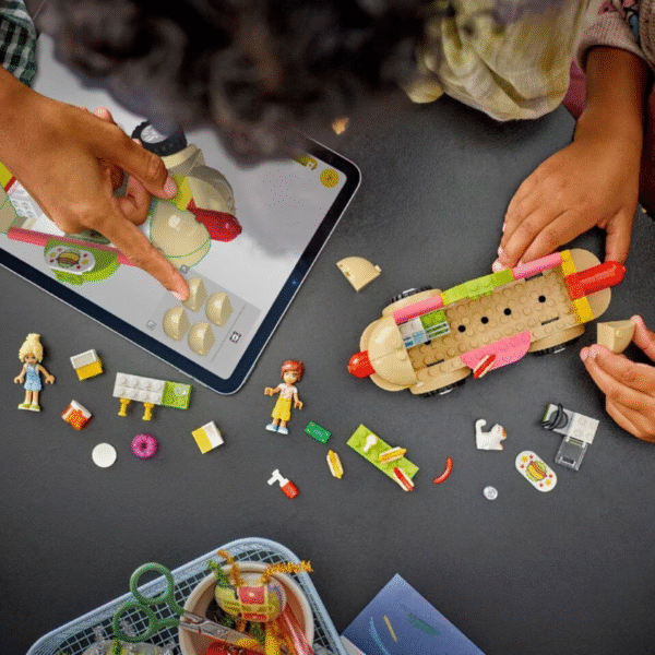 • Kids aged 4 and up who love pretend-play food can create lots of different stories with this LEGO® Friends Hot Dog Food Truck (42633) toy. This set helps kids learn to build and it comes with a buildable truck and 2 mini-dolls, plus a cat character and food accessories to inspire role-play.