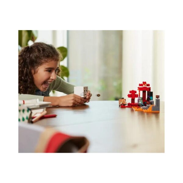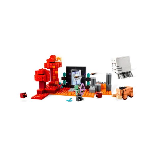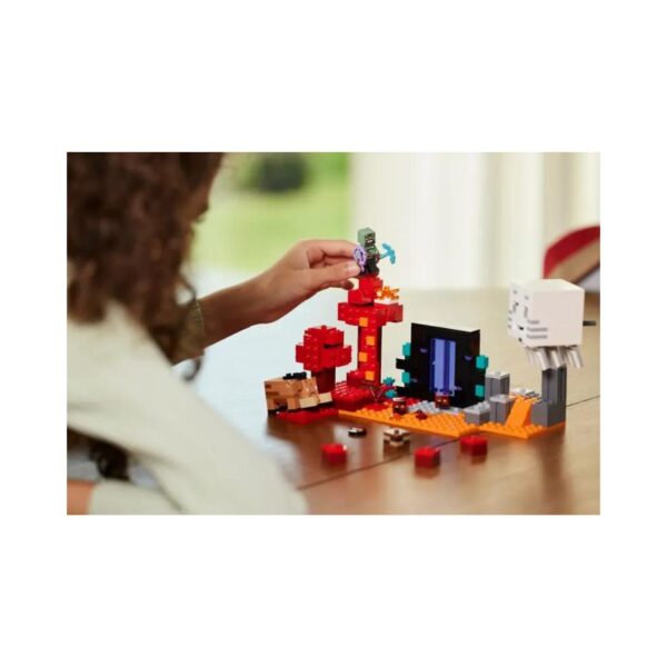 - The LEGO Minecraft The Nether Portal Ambush set lets kids aged 8 and up recreate scenes from the game. It includes a custom-skinned Orc-warrior figure and features a portal to the Nether, with mobs like magma cubes, a hoglin with a finger-controlled head, and a ghast that shoots discs. Ideal for fans wanting to bring Minecraft adventures to life.