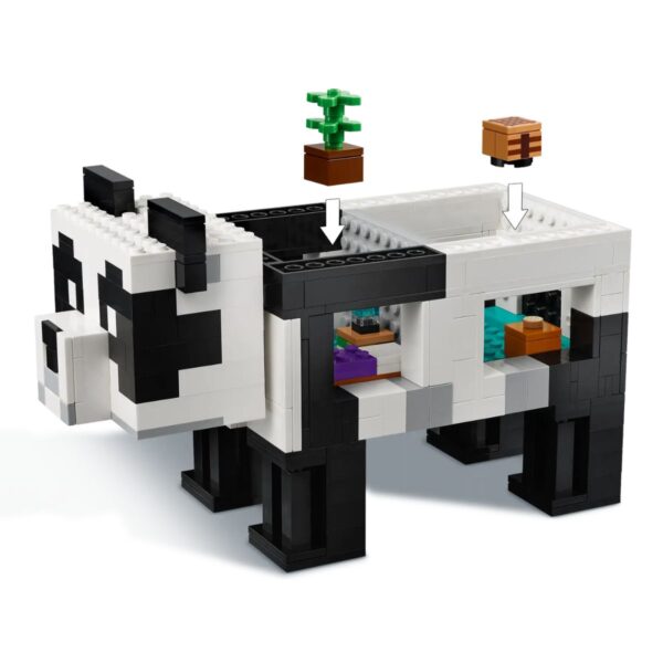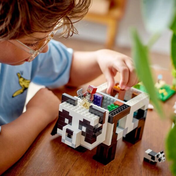 - Panda-house playset – LEGO® Minecraft® The Panda Haven (21245) features a buildable, 3-story, panda-shaped house with rooms and jointed limbs that allow it to move like a panda