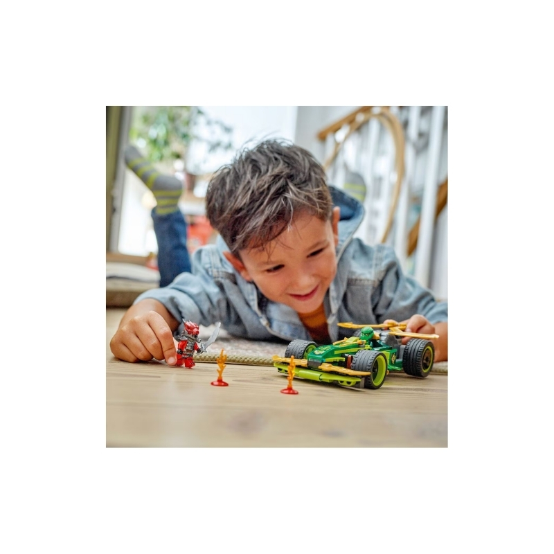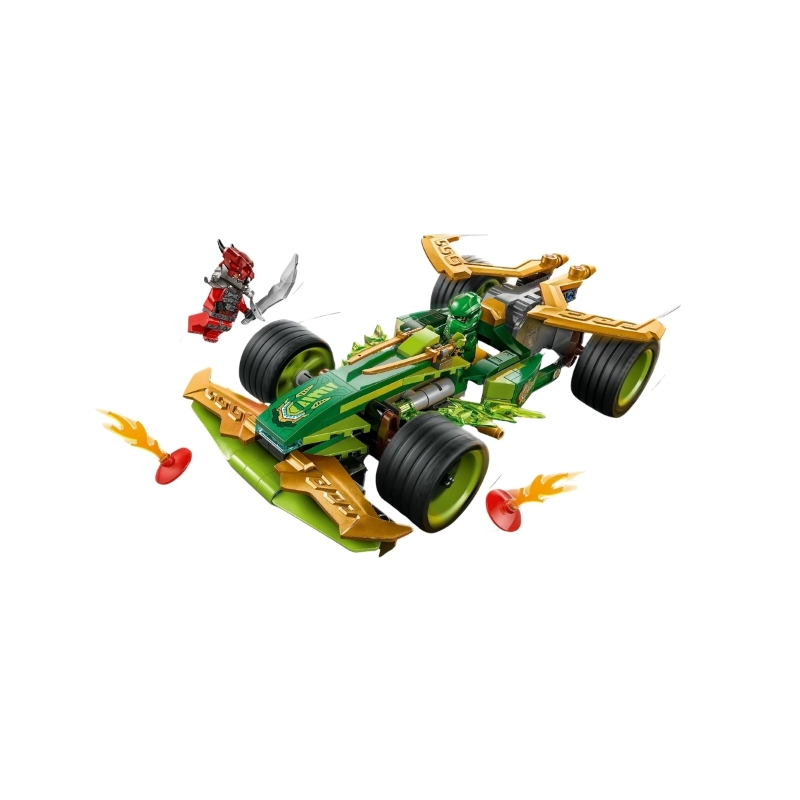 - Bring high-speed ninja action to life with Lego Ninjago Lloyd’s Pull-Back Race Car, inspired by Season 3 of the Ninjago Dragons Rising TV series. Designed for boys and girls aged 7 and up, this exciting set features Ninjago’s first-ever pull-back race car simply pull it back and release to watch it speed into action. The sleek green race car is decorated with lightning blade details and includes a cockpit for immersive play. Kids can create thrilling battles using the included lightning elements to build a small obstacle course. The set also includes 2 Ninjago minifigures Lloyd with golden katana swords and a Dragonian Warrior with a sword—perfect for imaginative role-play adventures.