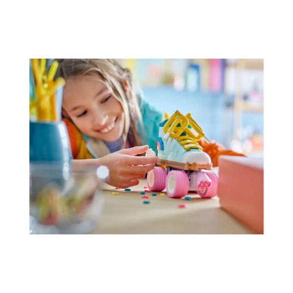 - Get ready for retro fun with the LEGO Creator Retro Roller Skate toy! This set includes three retro models in one box, allowing boys and girls aged 8 and up to build and rebuild three different pop culture icons using the same bricks. With endless play possibilities, kids can let their imagination run wild as they create and play out their own stories with these classic designs. From a roller skate toy to a mini skateboard and a boom box radio, this set offers a variety of options for exciting adventures and creative play.