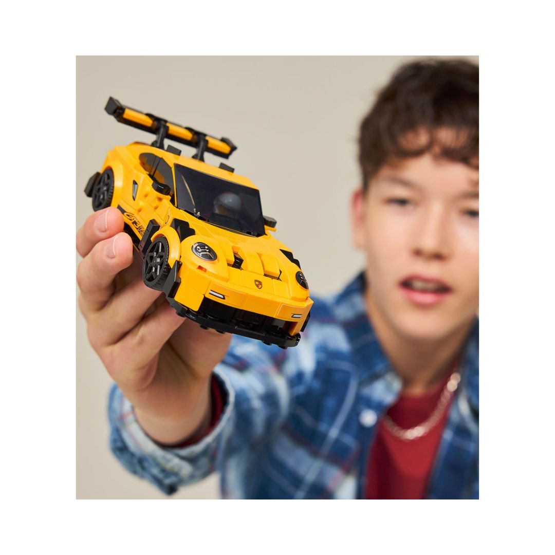 - Experience the thrill of building and owning one of the world’s most iconic sports cars with the LEGO Speed Champions Porsche 911 GT3 RS. With 348 pieces, this detailed set captures the aerodynamic lines, bold rear spoiler, and signature rims of the legendary Porsche. Designed for both play and display, the model features a cockpit with space for a minifigure driver, allowing fans to recreate racing adventures or proudly showcase the car as a collector’s piece. Build step by step using the included instructions or take advantage of the interactive LEGO Builder app, where you can zoom and rotate for a more engaging building experience.