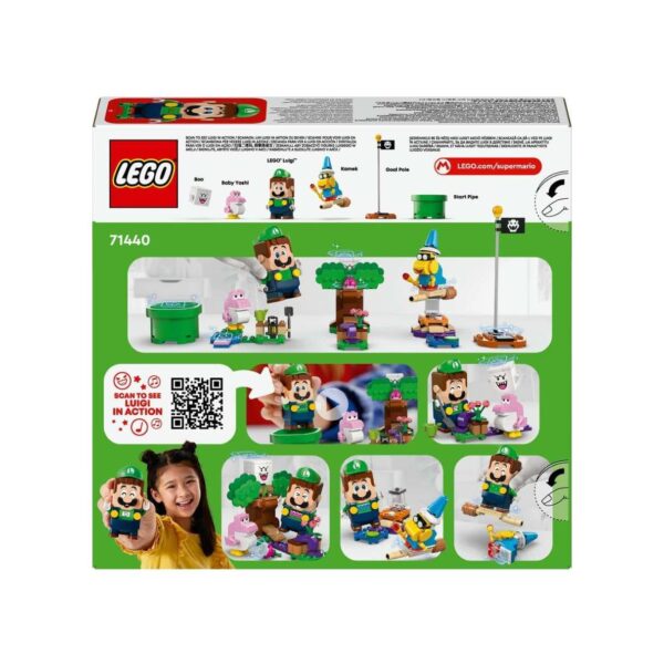 - Embark on fun garden-exploring adventures with LEGO® Super Mario™ Adventures with LEGO Luigi™ (71440)! This interactive playset brings the magic of Nintendo’s Super Mario world to life, featuring LEGO Luigi, Kamek, Pink Baby Yoshi, and Boo. Kids aged 6 and up can guide Luigi from the Start Pipe to the Goal Pole, triggering digital reactions, collecting coins, and tackling fun challenges. Defeat Boo, topple Kamek from the Mushroom Platform, and even fly away on Kamek’s broomstick! With interactive play features and the LEGO Super Mario app, this set offers an engaging, creative way to experience Super Mario in LEGO form.