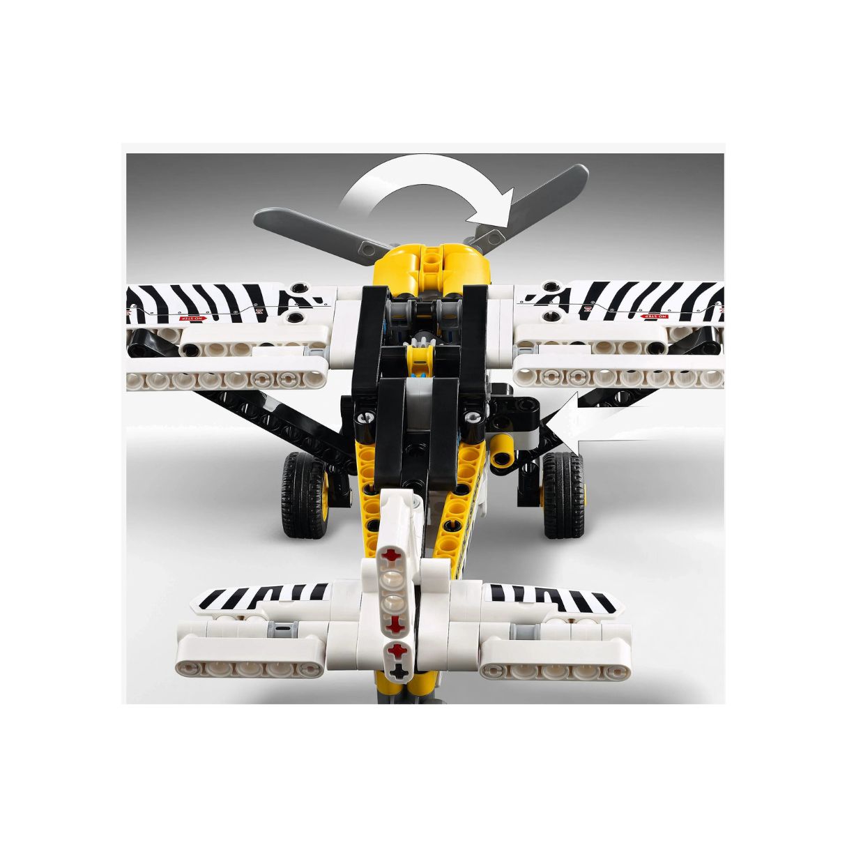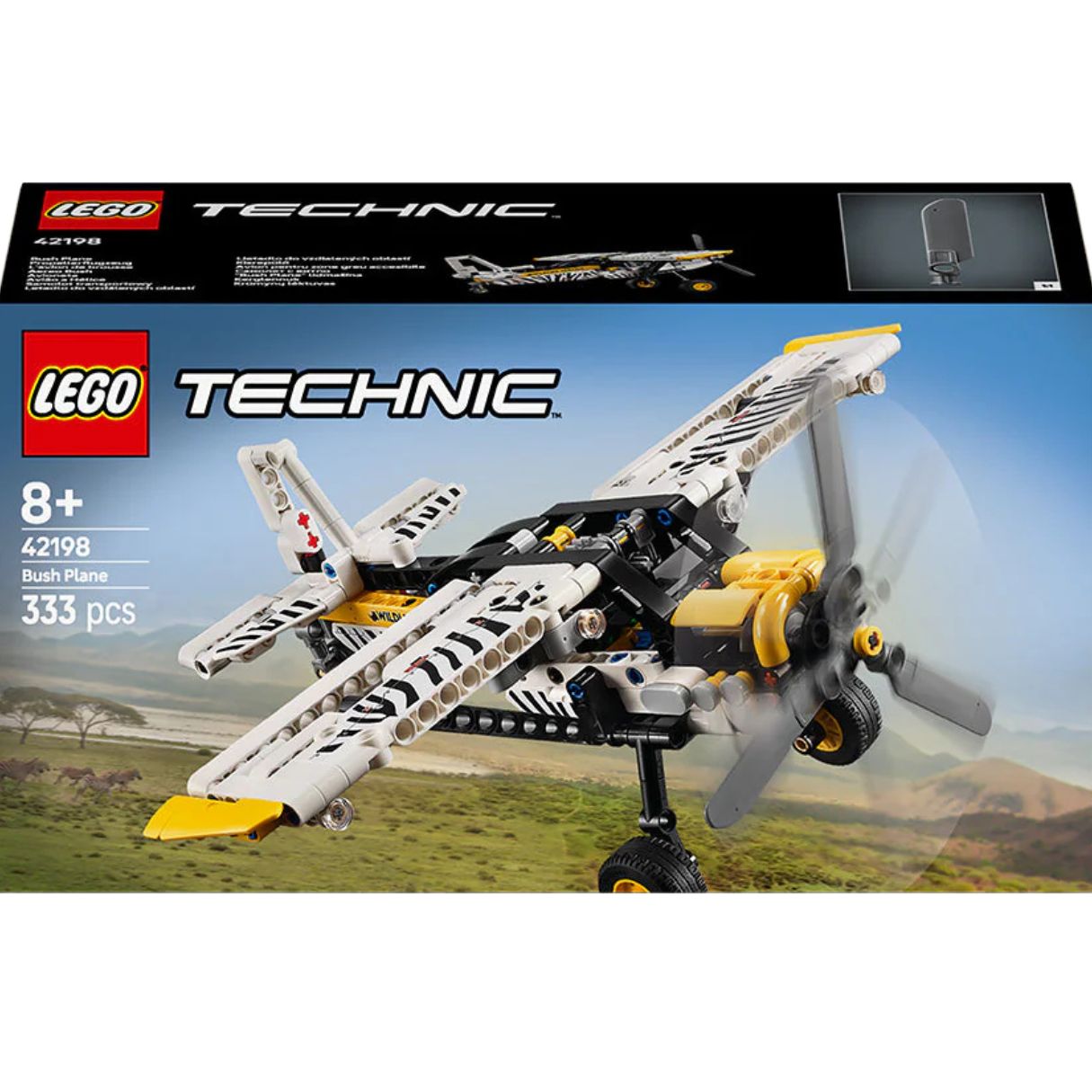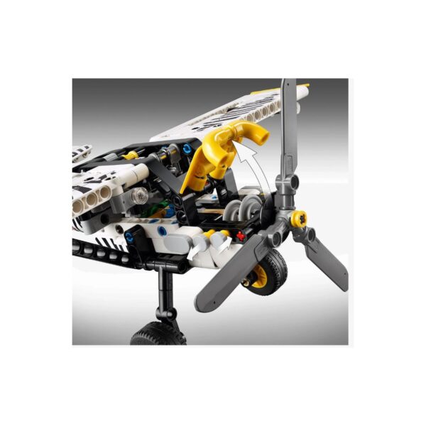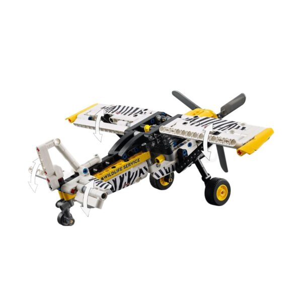 - Take to the skies with the LEGO Technic Bush Plane, a realistic model aircraft designed for young pilots and engineers! Featuring a spinning propeller, adjustable ailerons, and a detailed 4-cylinder piston engine, this action-packed airplane lets kids engage in imaginative flight missions. With its cool zebra print design, the set highlights the role of bush planes in wildlife conservation. Perfect for kids aged 8+, this build-and-play toy provides a fun introduction to engineering and aviation.