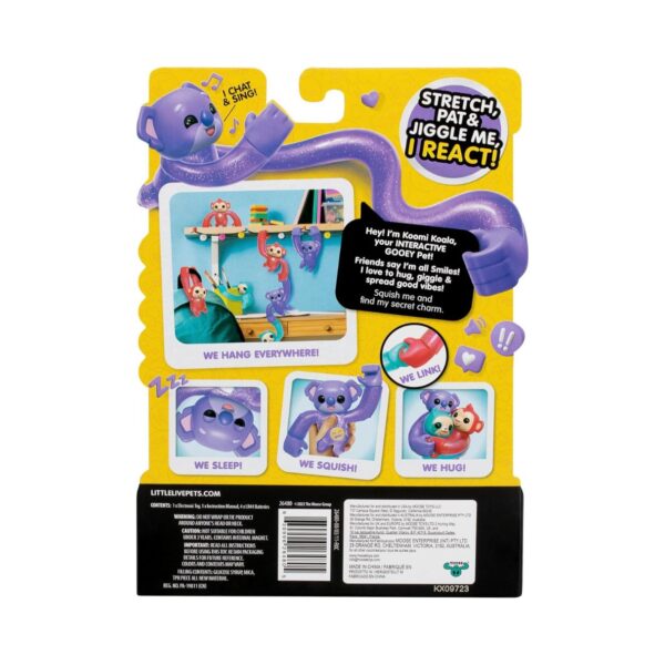 • The Little Live Pets Zoogooz Koala Koomi is an adorable and playful electronic koala toy that responds to touch and interacts with its environment. With its soft fur, expressive eyes, and charming personality, Koomi brings joy and laughter to children as they engage in imaginative play and friendship.