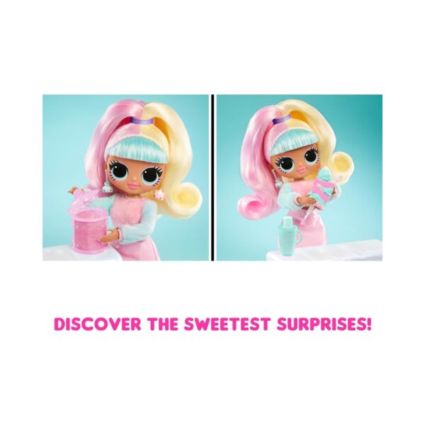 • LOL Surprise OMG Sweet Nails – Candylicious Sprinkles Shop features an ice cream pop freezer, 24 pastel nail designs, and Candylicious in her signature colors. Create and decorate nails with popsicle-themed accessories, trendy nail polish, and real glitter. The freezer also serves as a display case. Collect all 3 Sweet Nails Shops for endless nail design fun.