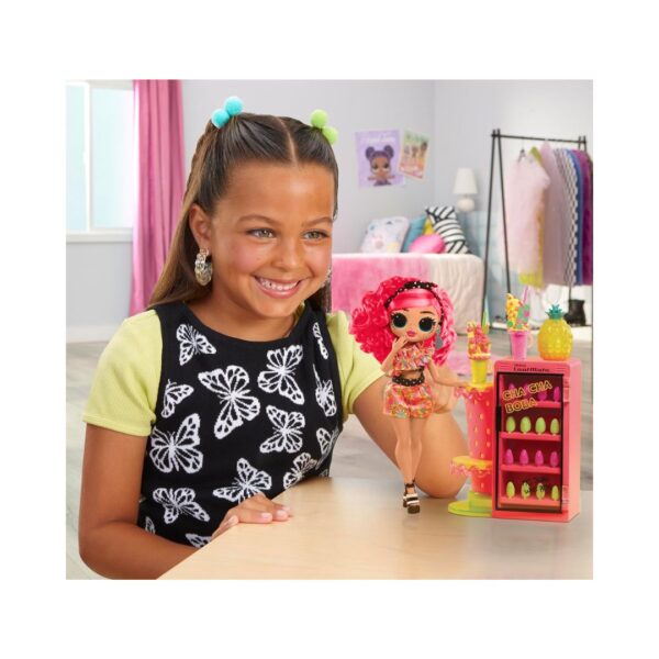 - LOL Surprise OMG Sweet Nails – Pinky Pops Fruit Shop features a mini fridge and shop counter with 24 neon fruit pop nail designs. Includes nail polish colors, real nail glitter, and fruity stickers. Customize and display nails using the fridge as a case. Collect all 3 Sweet Nails Shops for endless designs.