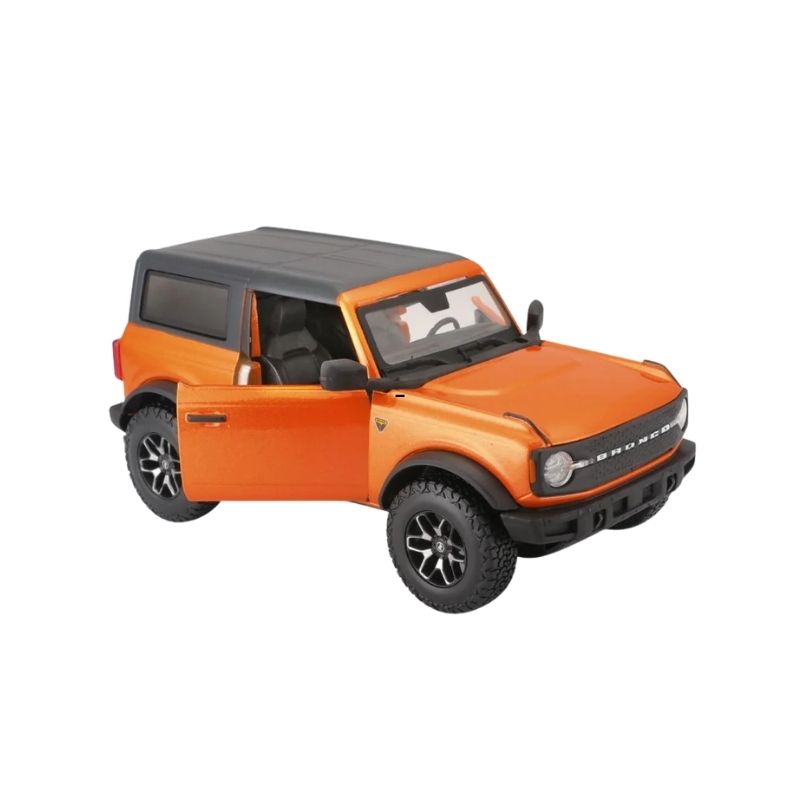 Tags: 1:24 scale car, 2-door Bronco, 2021 Ford Bronco, Bburago, collectible vehicle, die-cast SUV, Ford Bronco Badlands, Maisto, off-road vehicle model, orange Bronco model