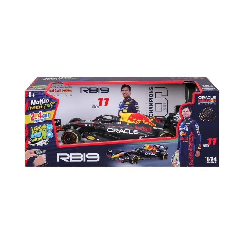 - Bring the excitement of Formula 1 racing to life with the Maisto 1:24 F1 Oracle Red Bull Racing RB19 RC Car. Officially inspired by the championship-winning RB19, this remote-controlled model showcases the car’s aggressive aerodynamics and iconic Oracle Red Bull Racing livery in impressive detail. Equipped with 2.4 GHz radio control for smooth, interference-free driving and a USB-rechargeable battery for convenience, this RC car delivers responsive performance and high-speed fun. Perfect for F1 fans, collectors, and racing enthusiasts, it’s an exciting way to experience modern motorsport at home.