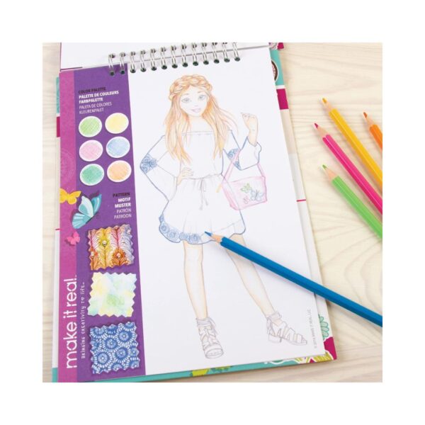 • Unleash your inner fashion designer with the Make it Real – Blooming Creativity – Fashion Design Sketchbook. This vibrant sketchbook invites aspiring fashionistas to explore their unique style and create stunning fashion statements with pre-drawn models and decorative elements. Ideal for young designers, it offers a perfect blend of creativity and inspiration for endless fashion design possibilities.