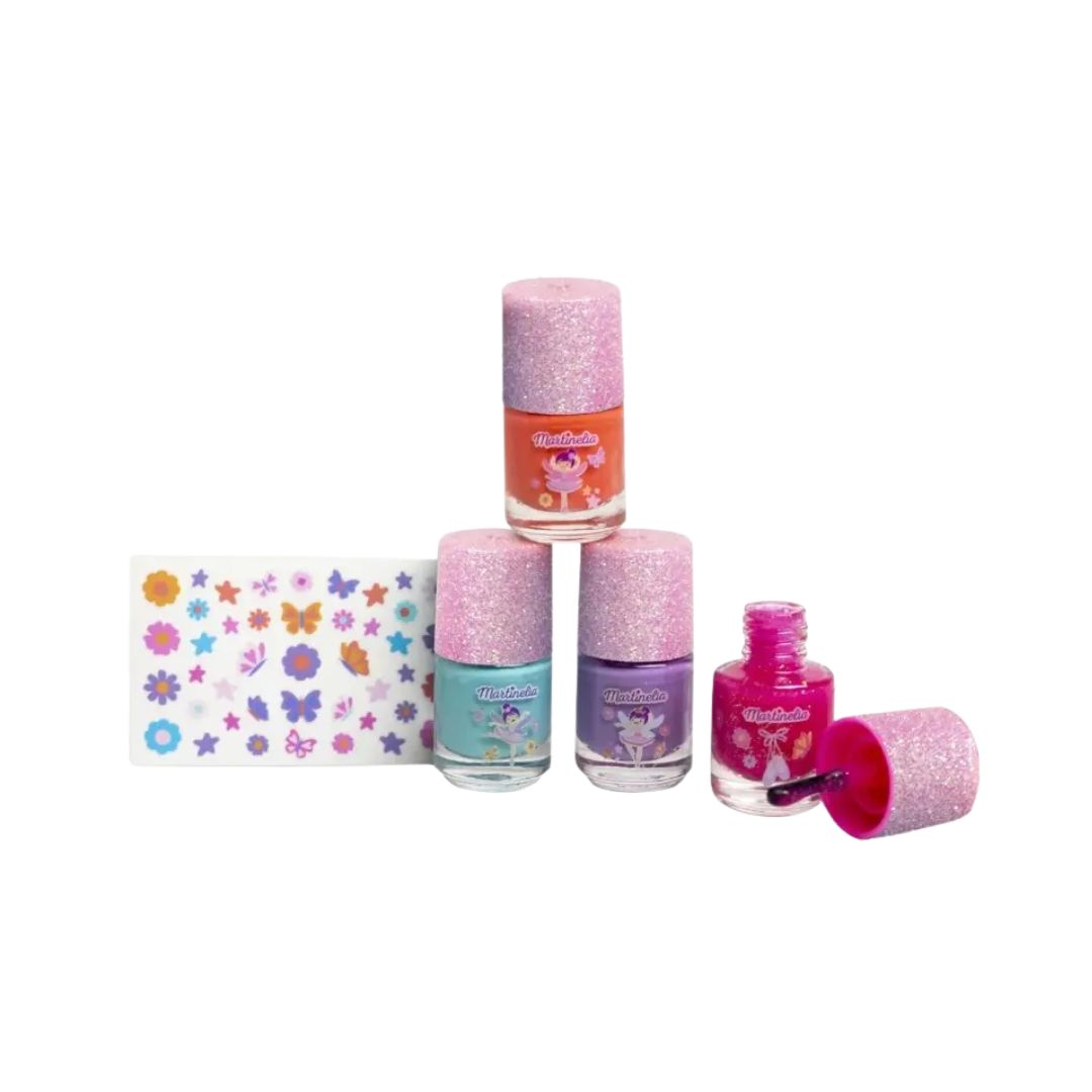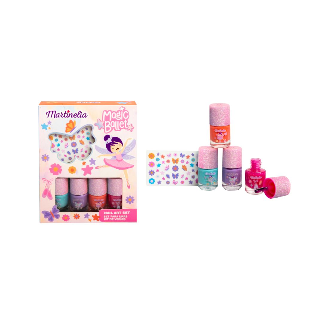 - Ballet themed nail polish set with 4 vibrant shades and cute stickers perfect for safe, creative fun and imaginative nail art play.