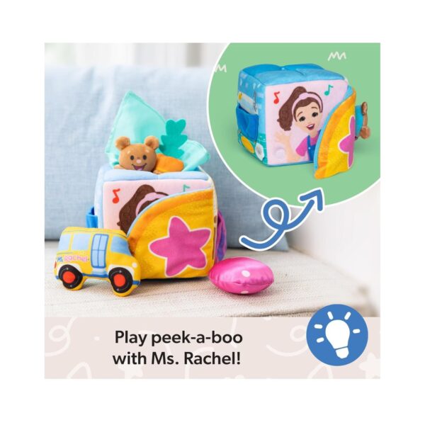 - The Ms. Rachel Surprise Learning Box is an interactive, baby-safe toy inspired by Ms. Rachel’s beloved baby and toddler videos. Designed to encourage early developmental milestones, this soft learning box helps with animal and object recognition, fine motor skills, and early speech development. Featuring four interactive learning scenes and six soft surprise accessories like a plush teddy bear and satin scarf, this toy box provides endless sensory exploration for little ones. A bonus learning card with play tips and skill-building activities enhances engagement. Created by Ms. Rachel and developmental experts, this toy is perfect for newborns, toddlers, and preschoolers and makes an excellent gift for baby showers, first birthdays, and early learning.
