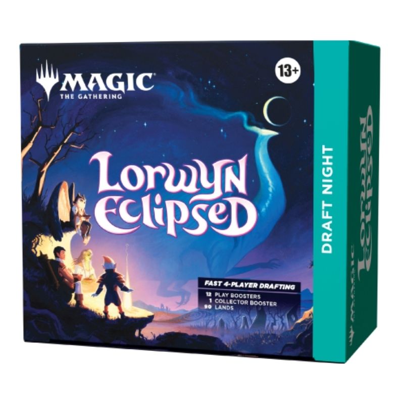 - Return to the enchanting world of light and shadow with MTG: Lorwyn Eclipsed Draft Night a complete draft experience in one box. Designed for four players, this all-in-one set lets you host a Pick-Two Draft right out of the box. Explore the dual-aspect plane of Lorwyn and Shadowmoor, draft powerful cards, build your decks, and battle it out for fun and bragging rights. With Play Boosters, a Collector Booster prize, and plenty of basic lands, Draft Night is perfect for unforgettable game nights with friends.