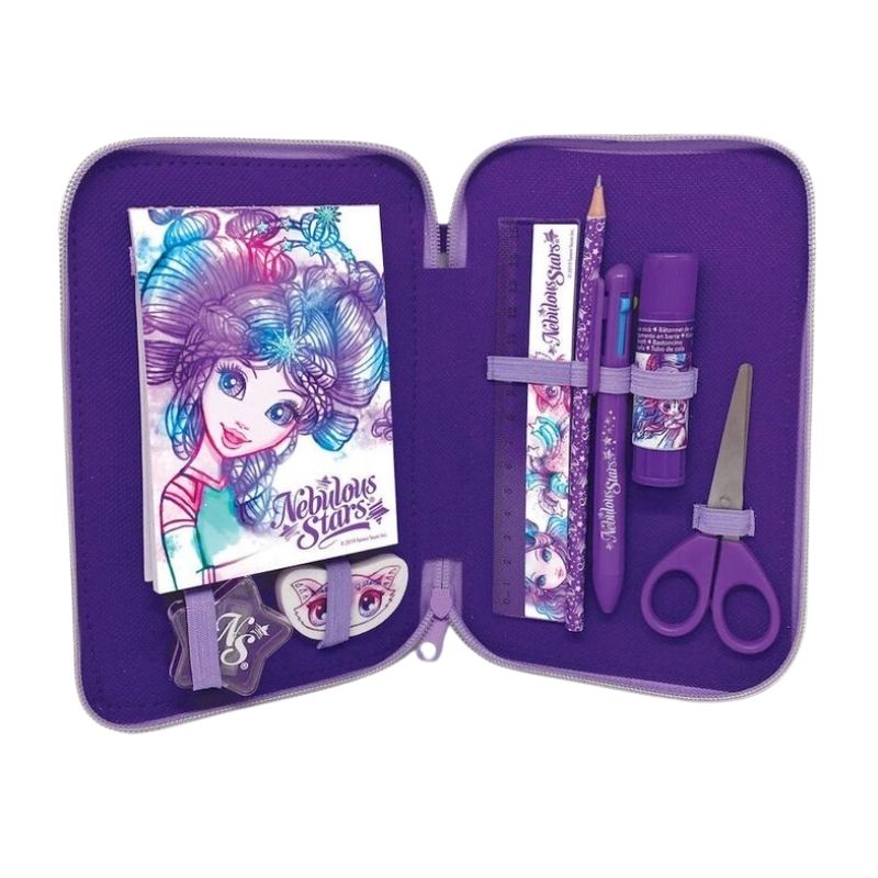 • The Nebulous Stars Estrelia & Astria Three-Piece Pencil Case Set is a magical all-in-one school and creativity companion. Packed with 18 crayons, 18 markers, essential school supplies, and a fun activity notebook, this set provides everything kids need for learning, coloring, and imaginative expression. With vibrant Nebulous Stars artwork and a practical multi-compartment design, it keeps all tools neatly organized while inspiring creativity every day.