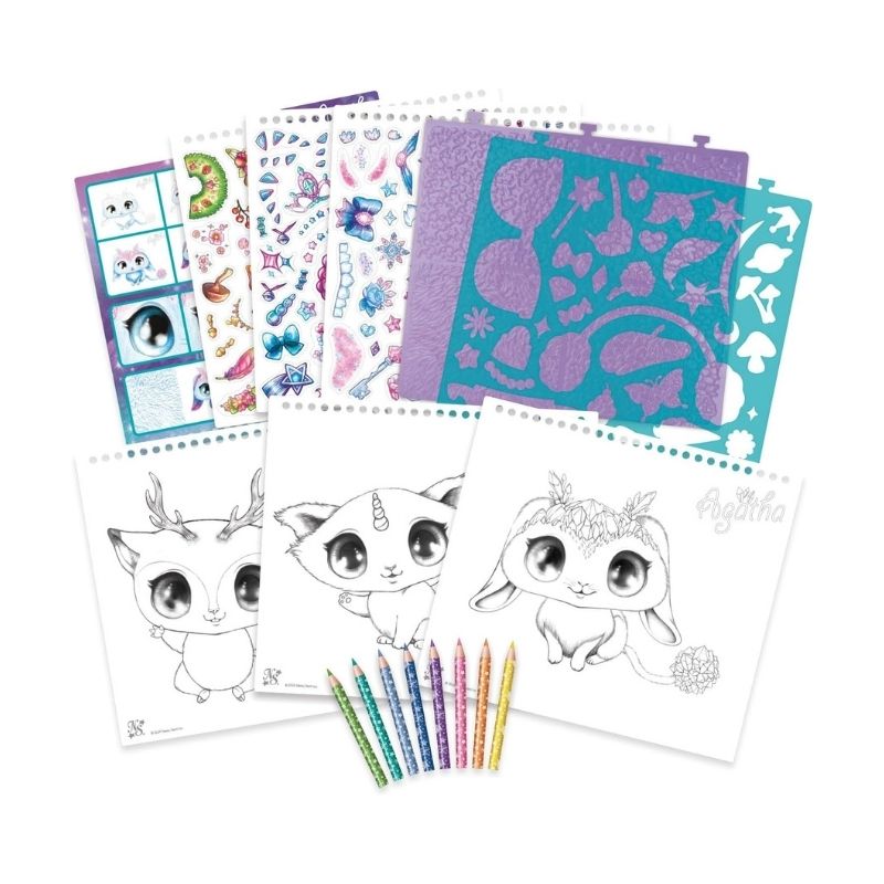 Tags: animal coloring pages, art activity set, coloring kit, coloring pencils, Craft Kit for Kids, creative kit, Drawing Kit, Kids Art Set, kids creativity kit, rub-on patterns, sketching kit, whimsical animals