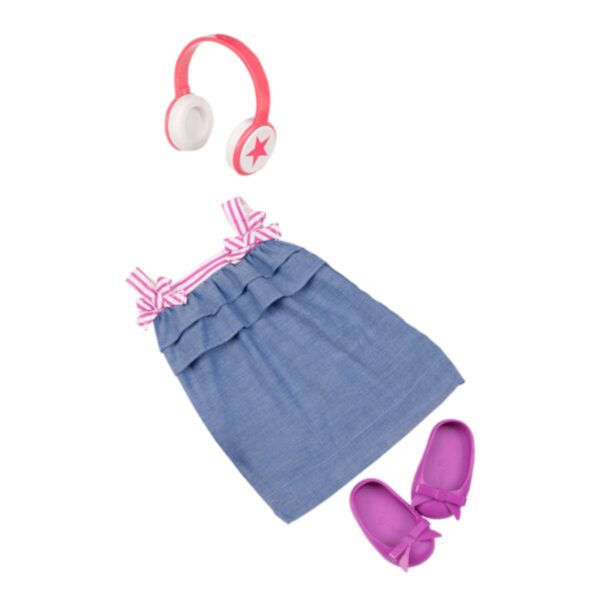 - Includes two outfits, a guitar, and fun musician accessories; 18 items total.