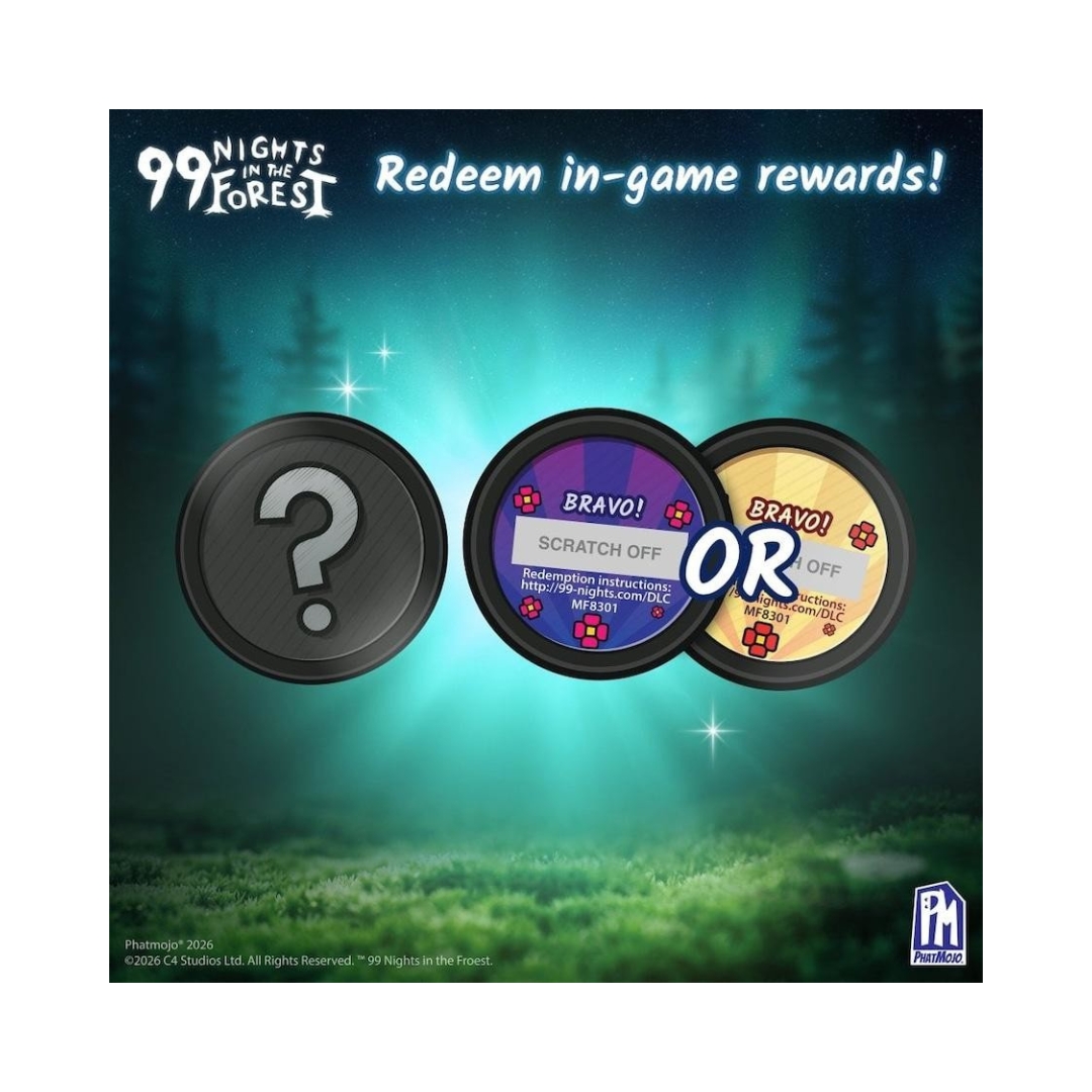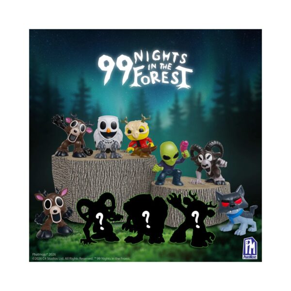 - Enter the eerie wilderness with the 99 Nights In The Forest Mystery Mini-figures MF8301 by Phatmojo. Inspired by the hit Roblox experience, each figure brings spooky forest creatures to life. Unbox mystery characters including Deer variants, Owl, Alpha Wolf, and rare chase figures. Each 2.67-inch mini-figure features bold details and vibrant, display-ready styling. Includes a bonus DLC code to unlock exclusive in-game items. Perfect for collecting, trading, or recreating your own forest adventures.
