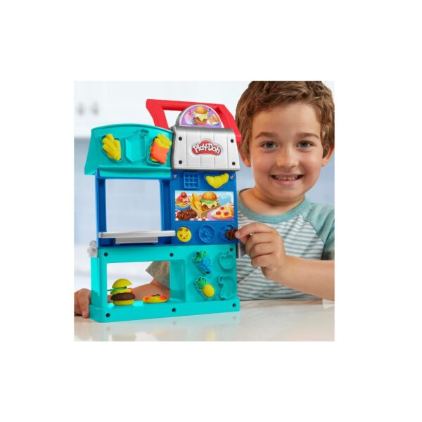 - Let your little chef take charge of their own restaurant with the Play-Doh 2-Sided Restaurant Kitchen Playset! This interactive kitchen set allows kids to create, customize, and share their imaginative Play-Doh food creations. From stamping pretend burgers and pizzas to decorating with toppings, the possibilities for culinary creativity are endless. With fun accessories like a menu board and a pretend oven, this playset provides an exciting restaurant roleplay experience for kids. It’s time to cook up some fun!