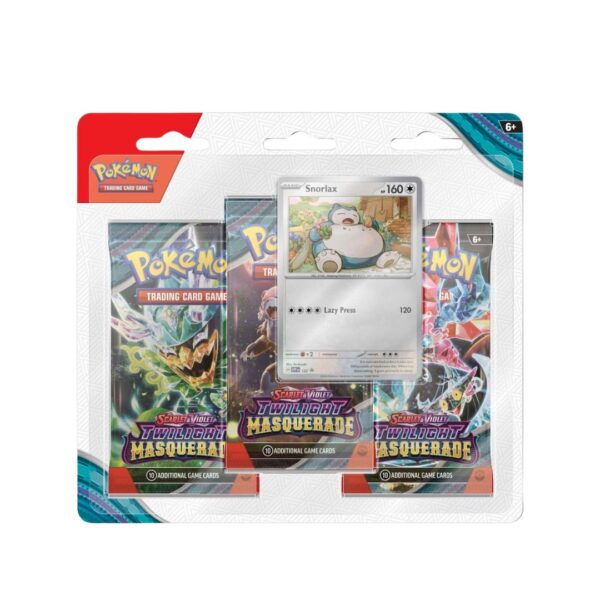 - Expand your collection with the Pokémon TCG: Scarlet & Violet—Twilight Masquerade 3-Booster Pack Set, featuring 3 booster packs, a foil Snorlax promo card, and a TCG Live code. Perfect for players and collectors alike.