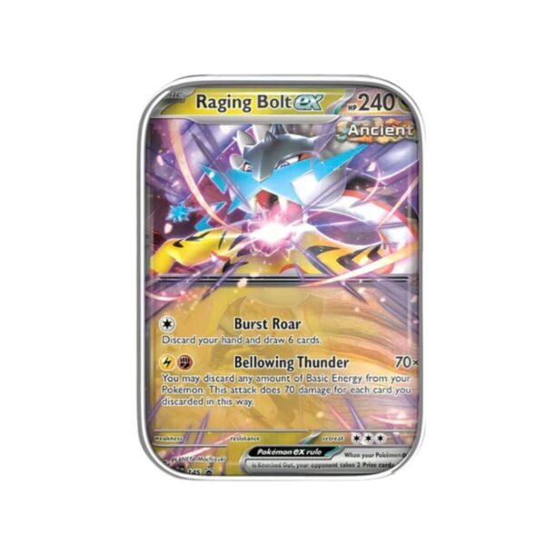 - 1 Random Tin Per Purchase: Featuring either Roaring Moon ex or Iron Valiant ex