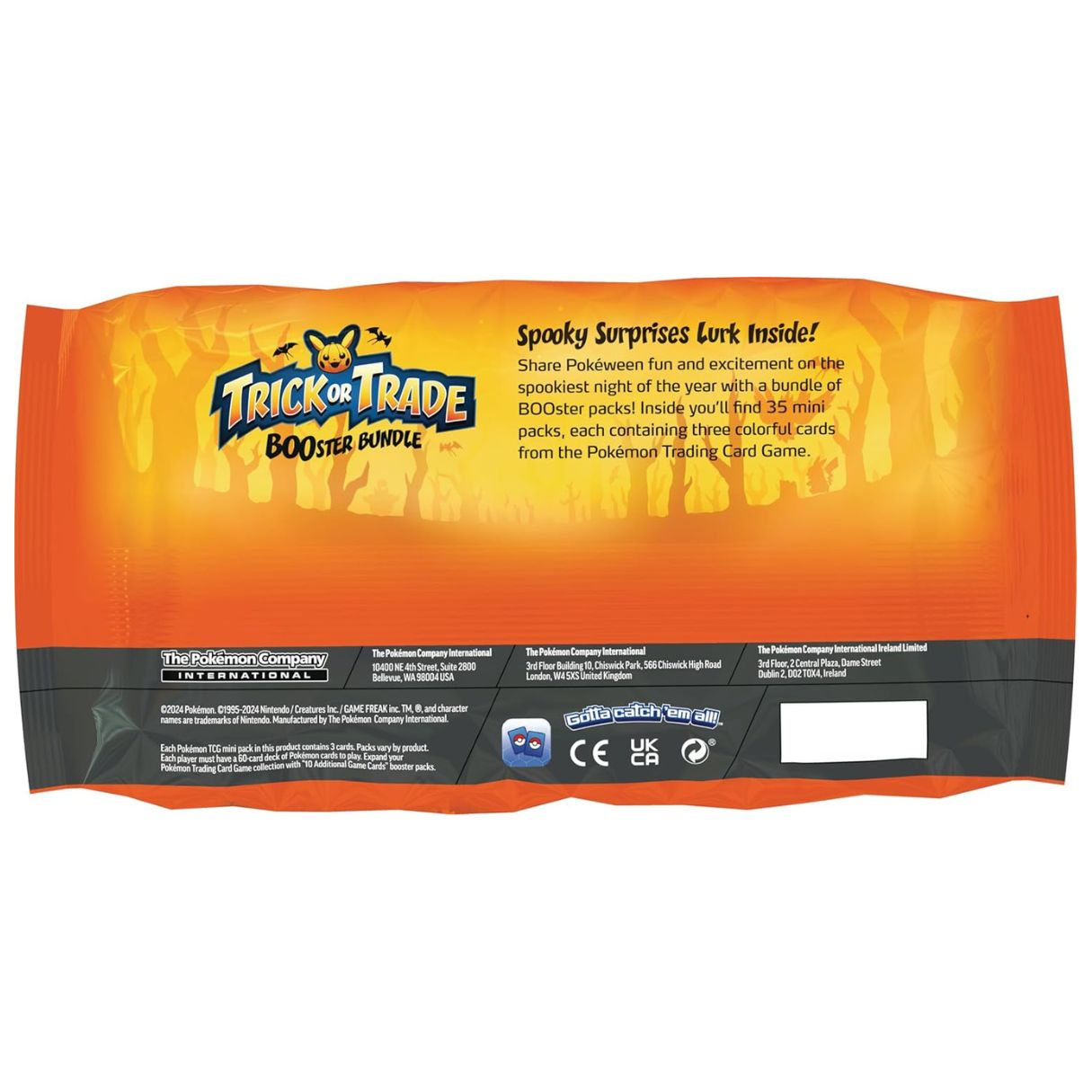 - Celebrate Halloween with a spooky twist using the Pokémon TCG: Trick or Trade BOOster Bundle (2024)! This festive bundle includes 35 mini booster packs, each containing 3 Pokémon cards, perfect for sharing the fun of Pokéween. Whether you’re a collector or looking for a unique alternative to candy, this Halloween-themed set is packed with excitement, cute frights, and fan-favorite Pokémon in a delightfully eerie design. Great for party favors, trick-or-treating, or just spreading Pokémon joy in a hauntingly fun way!