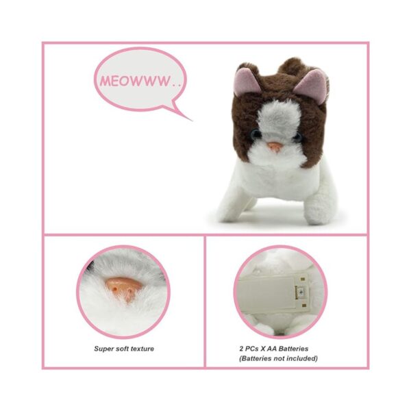 • Interactive Features: Our plush cat goes beyond the ordinary with smart features that will capture your child’s heart. Watch as the toy cat walks, emits a delightful meow sound, and playfully wags its tail. These interactive elements not only make playtime more exciting but also contribute to keeping your child active and energetic.