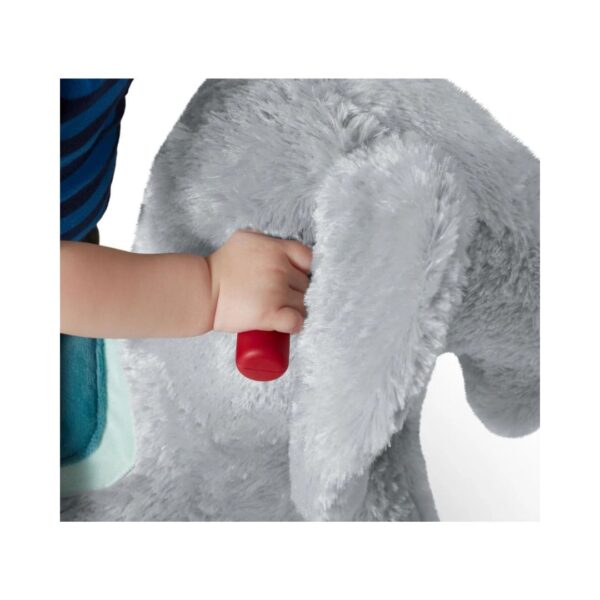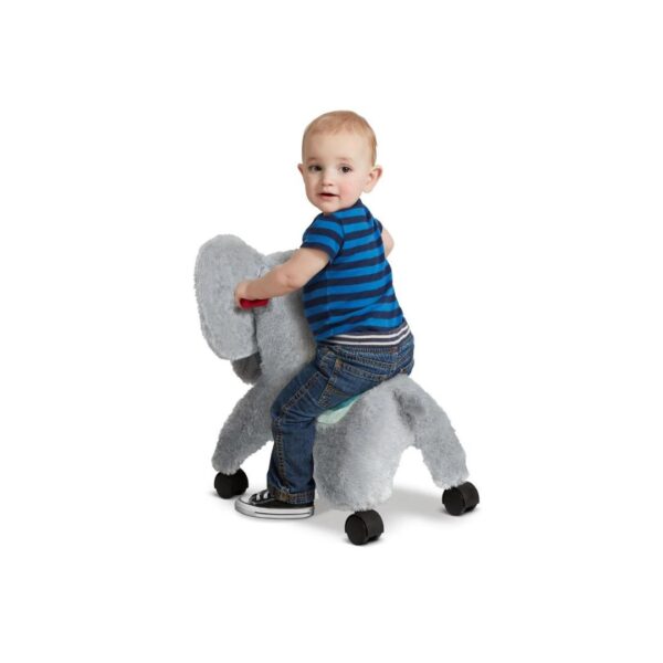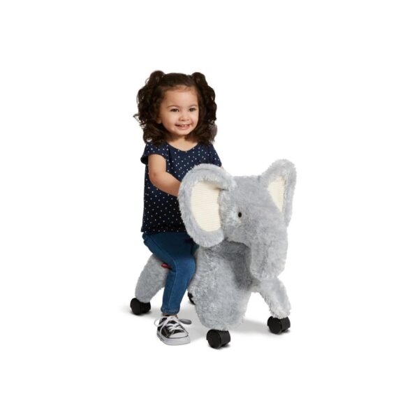 - Ellie the Elephant is a plush companion with textured corduroy ears, perfect for hugs. Its EZ-Glide™ 360° caster wheels ensure a smooth ride indoors or outdoors, while the cushioned saddle and easy-grip handles provide comfort and control.