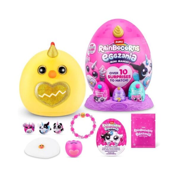 - Prepare for an egg-citing adventure with Rainbocorns Eggzania, a magical world packed with over 10 unbeatable surprises! Unveil the enchantment within each Rainbocorn egg, as it reveals plush delights, collectibles, and the introduction of adorable Yolkies. Discover, collect, and share the joy with these pocket-sized friends from the heart of Rainboville.
