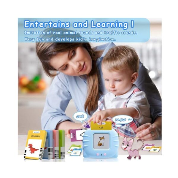 • Guided Pronunciation: Helps toddlers learn and practice standard pronunciation of words by reading aloud with the assistance of the card reading machine. The machine can also imitate real animal and vehicle sounds, enhancing engagement and curiosity.