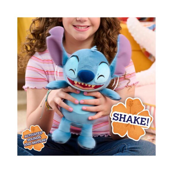 - Interactive Fun: Shake Stitch to activate his hilarious laughter and wiggly movements.