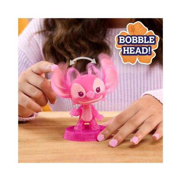 - Add a dash of interstellar fun with the Disney Angel Large Collectible Figure! Standing at an eye-catching 5 inches tall, this translucent pink figure brings Disney’s Angel from Lilo & Stitch to life in a cosmic and stylized design. Crafted from high-quality translucent plastic, this collectible captures Angel’s charming personality and cosmic vibe. Tap her head or give her a gentle shake, and watch as her head bobs and wobbles for hours of delightful entertainment. Perfect for decorating desks, shelves, or play areas, Angel brings a touch of Disney magic to any space. Pair her with the Disney Stitch bobble-head collectible figure (sold separately) to complete the celestial set. This adorable collectible makes a stellar gift for collectors, Disney fans, and kids aged 3 and up.