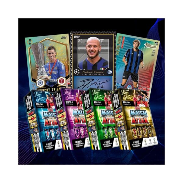 - Elevate your soccer card collection with the Match Attax 2024/25 Random Mega Tin – UEFA Collectors Tin. This exclusive collectors tin is packed with a surprise assortment of limited edition soccer cards from the 2024/25 season, featuring top UEFA teams and players. Perfect for both dedicated collectors and football fans, each random mega tin offers a unique chance to uncover rare cards and exclusive designs that celebrate the spirit of European football. Gear up for the new season and add this must-have collectible to your Match Attax lineup!