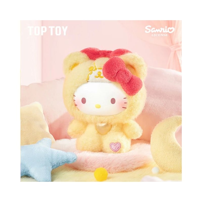 - Cuddle up with cuteness in the TopToy Hello Kitty Teddy Pajamas Vinyl Plush Blind Box! Each blind box contains a surprise Hello Kitty plush figure dressed in adorable teddy-themed pajamas, blending soft plush materials with vinyl detailing for a charming collectible. Perfect for fans, collectors, or as a whimsical gift, these plush figures bring a playful and cozy vibe to your desk, shelf, or bag. The excitement of unboxing a mystery figure adds extra fun to this kawaii series.