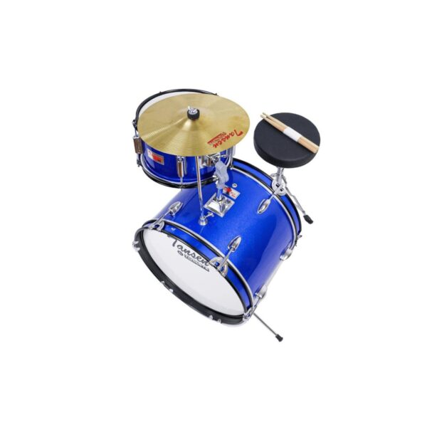 The Tovaste J1042 Junior Drum Kit comes as a complete set including a bass drum, snare drum, toms, a crash cymbal, and an adjustable drum throne. This all-in-one package provides young drummers with everything they need to start playing right away, making it an ideal starter kit for beginners.