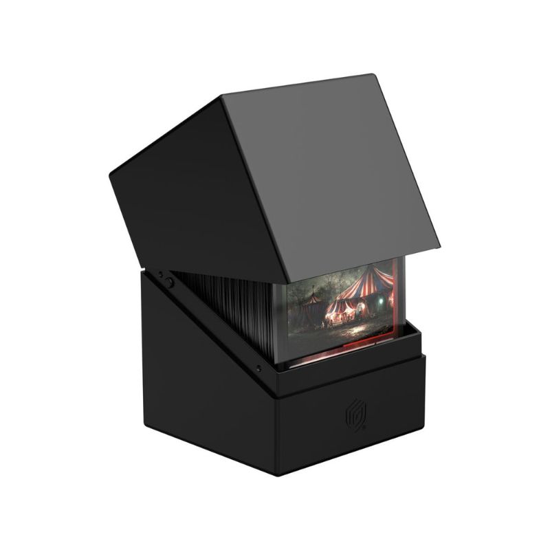 - The Ultimate Guard Boulder 100+ Solid – Black combines sleek design with premium protection for your trading cards. Built to hold up to 100 double-sleeved or 120 single-sleeved standard-size cards, this durable deck box features a solid black finish that perfectly matches the Ultimate Guard Monocolor Line. Its rigid structure, secure closure, and smooth matte surface make it a top choice for collectors and competitive players alike. Proudly made in Germany, it also integrates seamlessly with other Ultimate Guard Arkhive products for a cohesive and practical storage system.