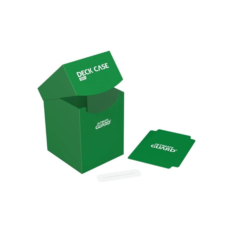 - The Ultimate Guard Deck Case 100+ – Green is a durable and practical deck box designed to hold and protect your collectible card game decks. It’s made from high-quality polypropylene, providing a sturdy structure and secure closure to keep your cards safe. Ideal for players who need a reliable storage solution for tournaments, travel, or daily use.