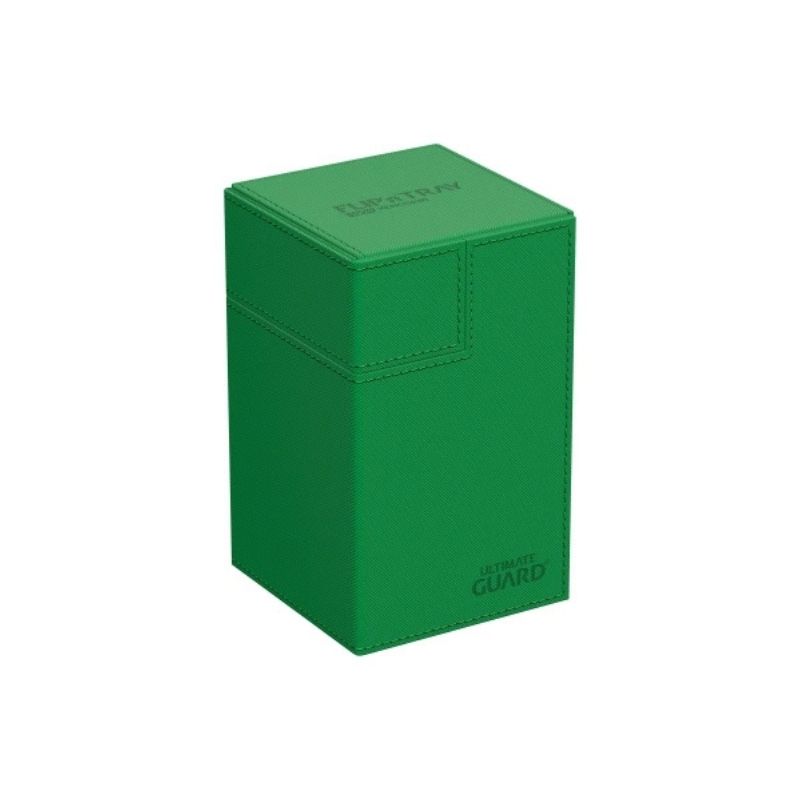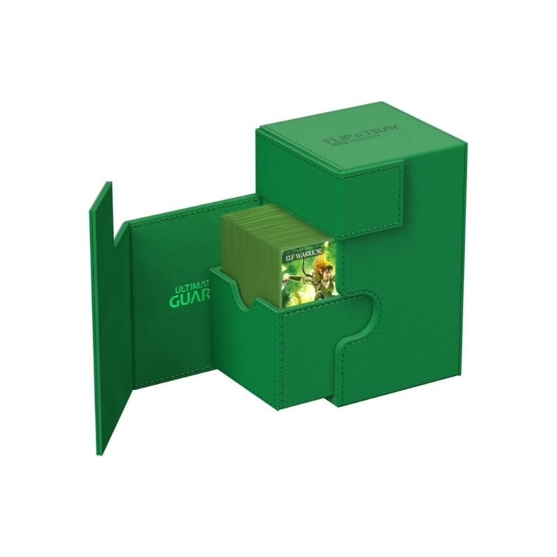 - The Ultimate Guard Flip’n’Tray 100+ Xenoskin – Green (UGD011230) is a premium deck box and playset organizer designed to store and protect over 100 double-sleeved trading cards. Featuring a durable XenoSkin™ exterior and innovative Flip’n’Tray system, it allows quick access to your cards while keeping them securely protected. Perfect for collectors and tournament players.
