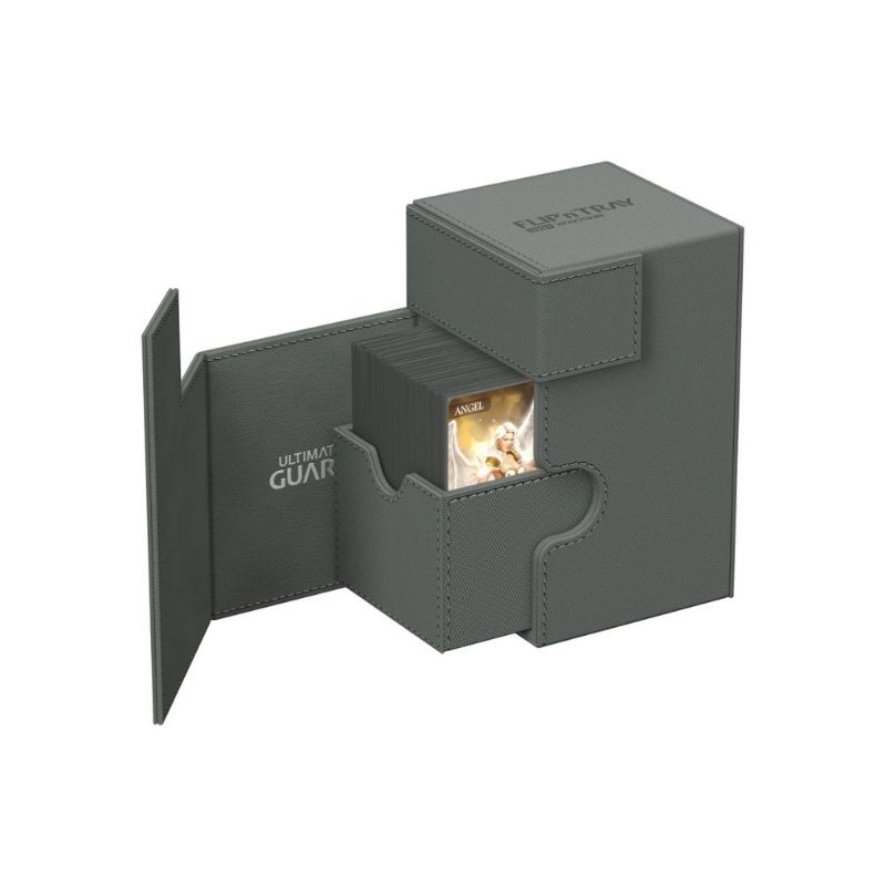 - The Ultimate Guard Flip’n’Tray 100+ Xenoskin – Grey (UGD011233) is a premium deck box and playset organizer designed to store and protect over 100 double-sleeved trading cards. Featuring a durable XenoSkin™ exterior and innovative Flip’n’Tray system, it allows quick access to your cards while keeping them securely protected. Perfect for collectors and tournament players.