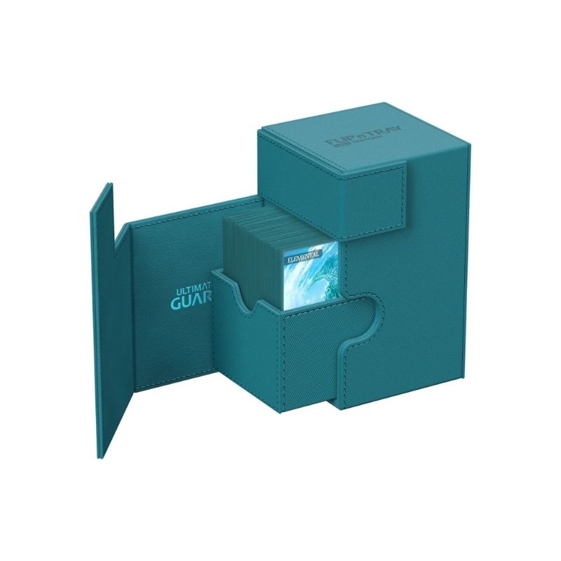 • The Ultimate Guard Flip’n’Tray 100+ Xenoskin – Petrol (UGD011231) is a premium deck box and playset organizer designed to store and protect over 100 double-sleeved trading cards. Featuring a durable XenoSkin™ exterior and innovative Flip’n’Tray system, it allows quick access to your cards while keeping them securely protected. Perfect for collectors and tournament players.