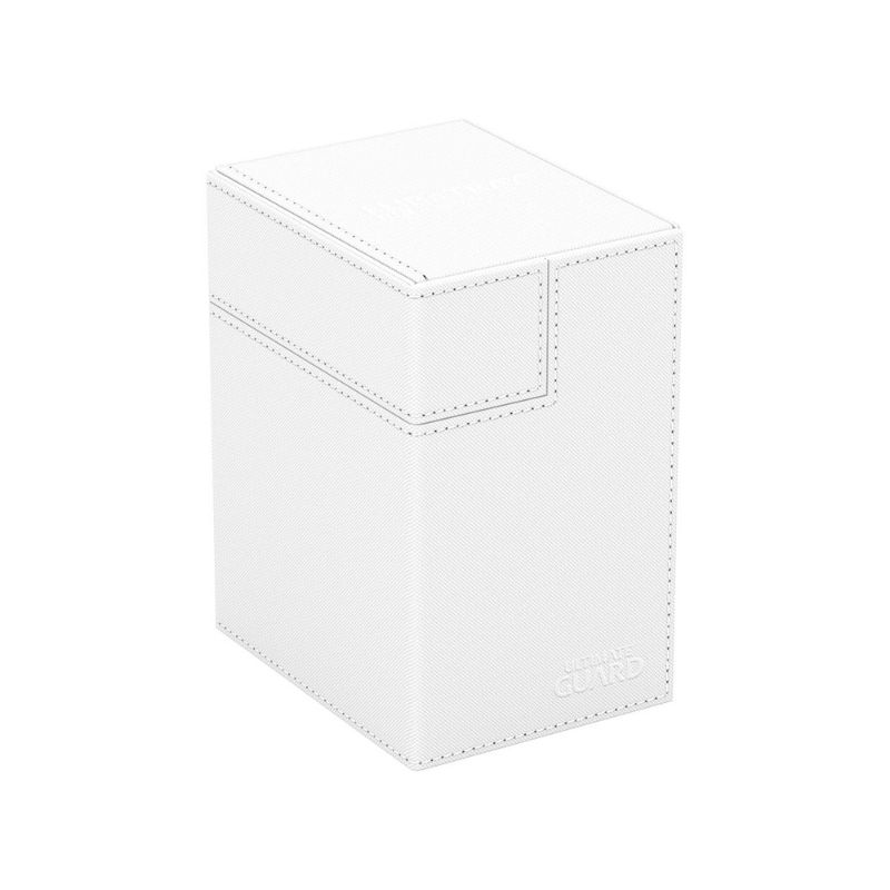 - Keep your cards protected in style with the Ultimate Guard Flip’n’Tray 133+ Xenoskin – White. This premium deck box holds up to 133 double-sleeved or 160 single-sleeved cards, making it perfect for Commander/EDH, Magic: The Gathering, Pokémon, Lorcana, and other TCGs. Featuring removable trays for cards and accessories, a soft microfiber lining, and a durable Xenoskin texture, this elegant deck box combines function and sophistication. Its strong magnetic closure ensures your cards and dice remain safe wherever you go.