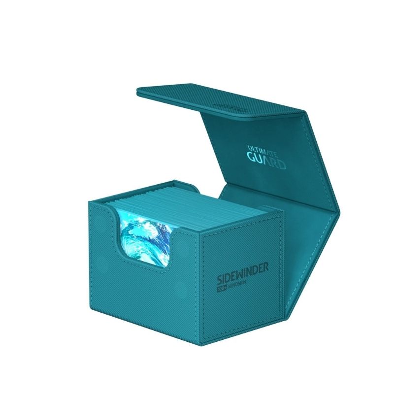 - The Ultimate Guard Sidewinder 100+ Xenoskin – Petrol (UGD011215) is a premium deck box designed to securely store and protect up to 100 double-sleeved trading cards. Featuring a textured XenoSkin™ exterior and soft microfiber lining inside, it offers durability, secure closure, and easy access for players and collectors alike.