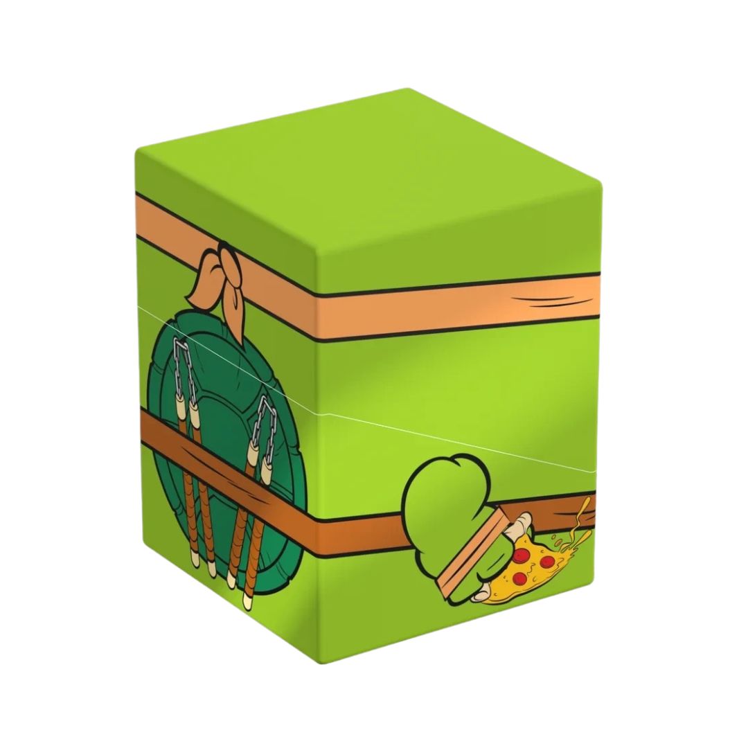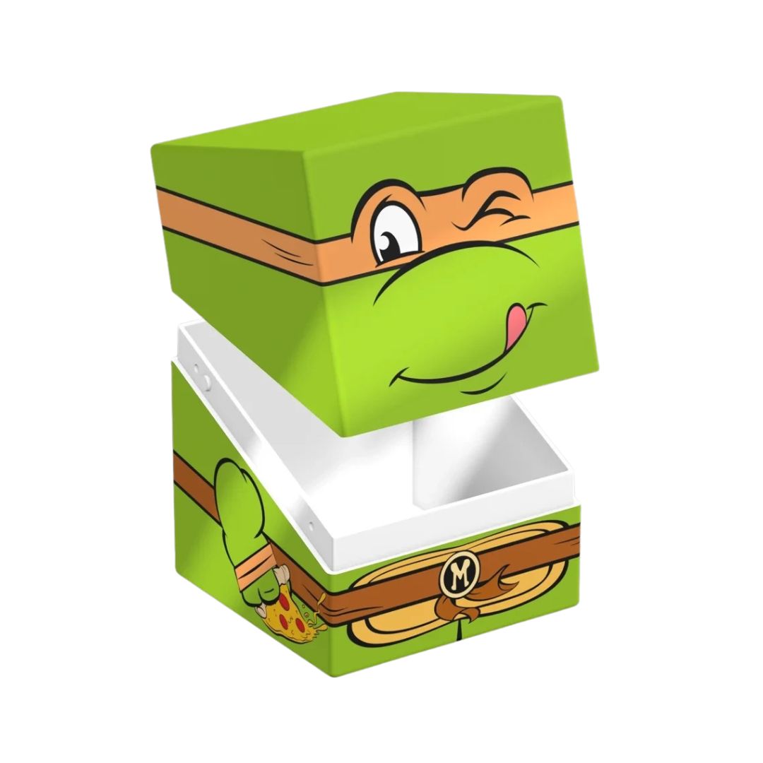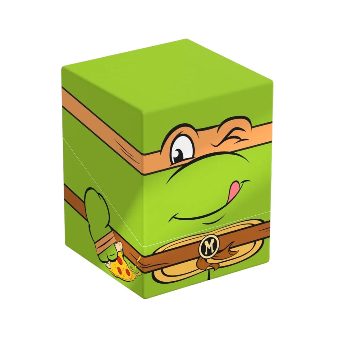 - SQUAROE Teenage Mutant Ninja Turtles™ NT005 Michelangelo is a fun, collectible deck box by Ultimate Guard, featuring the energetic Michelangelo. Crafted from 78% sustainable materials, it offers reliable protection with a vibrant design. Inspired by the Boulder deck box, it delivers a sturdy build and secure closure. It holds up to 100 double-sleeved standard or Japanese-sized cards. Perfect for TCG players and TMNT fans, it blends durability with playful, limited-edition style. Complete your set with the Turtle Van Collector’s Case for ultimate