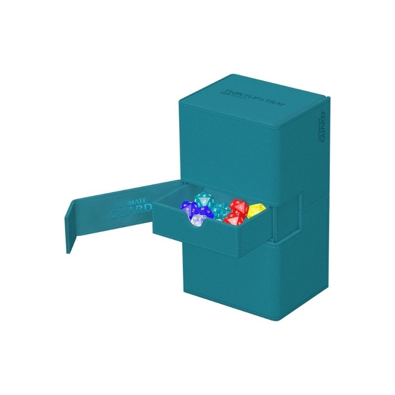 - The Ultimate Guard Twin Flip’n’Tray 200+ Xenoskin in Petrol is a premium deck box designed for serious trading card collectors and players. Its sleek Xenoskin textured surface offers superior durability and a professional matte finish. Featuring two removable card trays and one accessory tray with magnetic lids, it provides easy access and organization for up to 200 double-sleeved or around 240 single-sleeved cards. This deck box combines practicality, protection, and style.