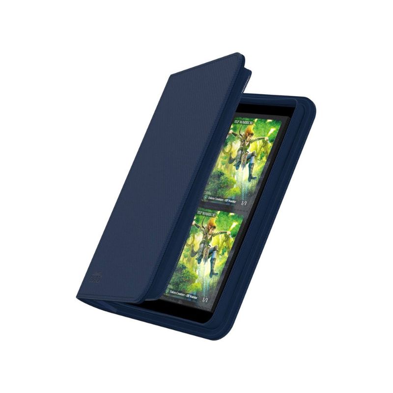 - The Ultimate Guard Zipfolio 160 8-Pocket Xenoskin Binder is a premium storage solution designed for collectors of trading card games. Featuring a sleek blue XenoSkin™ exterior, this binder offers a durable and stylish way to organize your collection. It includes 20 integrated 8-pocket pages, each capable of holding 8 cards, accommodating up to 160 double-sleeved cards. The side-loading pockets and secure zipper closure ensure your cards remain safe and easily accessible.