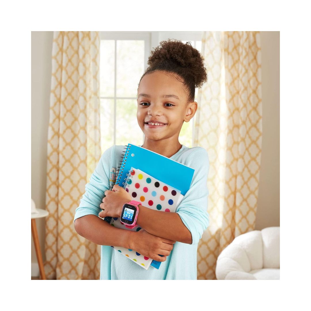 Vtech Smart Watch DX3 in pink, featuring a colorful display and various interactive functions for kids.