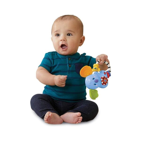 - The adorable VTech Koala Rattle is designed to keep little ones entertained while promoting their developmental milestones. With its twistable ears, light-up heart button, and motion sensor, this fun and interactive toy helps babies learn and grow through play. Ideal for on-the-go fun, the black and white handle encourages visual recognition and motor skill development. Your child will enjoy engaging with this cute koala as it plays 3 catchy sing-along songs and 15 lively melodies, making it an excellent addition to your baby’s toy collection.