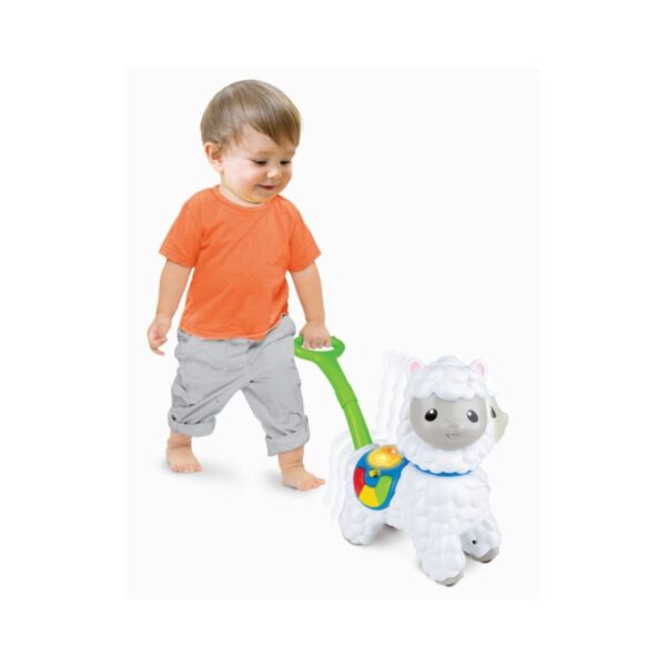 - Little Alpaca is an adorable push-along toy shaped like a charming alpaca, offering hours of fun and learning for young children. With engaging features like phrases, sounds, melodies, and flashing lights, it encourages active play and imaginative exploration. The easy-grasp handle makes it perfect for little hands to push and interact with, providing endless entertainment.