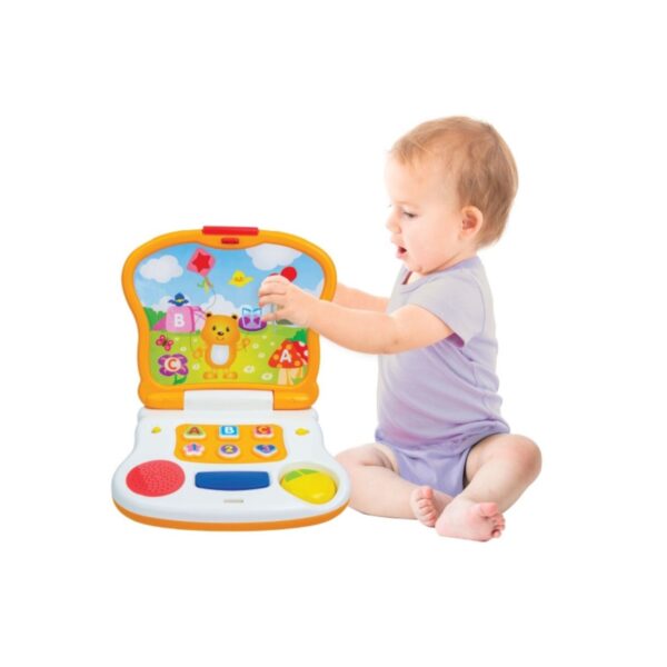 - The Bear Character Learning Laptop is a fun and engaging early learning toy designed to introduce toddlers to ABC, 123, and shapes in an interactive way! Featuring a cute bear design and a magical screen, this toy laptop makes learning exciting with two play modes—Learning Mode for educational concepts and Music Mode for cheerful melodies. The music space bar adds a playful touch with fun tunes, while the clicking mouse mimics a real computer, encouraging imaginative play. Perfect for little learners, this laptop helps develop fine motor skills, hand-eye coordination, and early cognitive abilities.