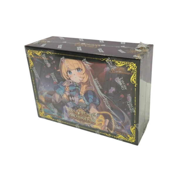 Grand Archive Radiant Origins 1st Edition Booster Box featuring vibrant artwork and collectible card game elements