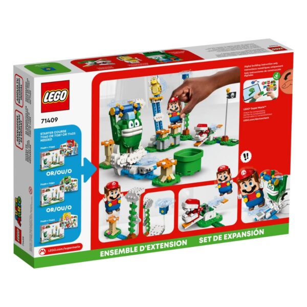 - Kids can create their own LEGO® Super Mario™ sky level with the Big Spike’s Cloudtop Challenge Expansion Set (71409). It features familiar challenges from the Super Mario™ video games and LEGO figures of 3 popular enemies – a Big Spike, a Boomerang Bro, and a Piranha Plant. Players earn digital coins for helping their LEGO® Mario™, LEGO® Luigi™ or LEGO® Peach™ figures (not included) battle the Big Spike, jump on the orange Mushroom Trampolines to get to the Boomerang Bro, use the Super Star Block, and more. (Note: the 71360, 71387 or 71403 Starter Course is required for play.)